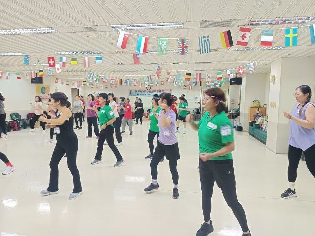 這堂課的主題曲是〈快樂崇拜〉,熟悉的旋律一響起,學員們立刻融入節奏,舞步中充滿活力與笑聲,有的群友邊跳邊哼歌,有的相互打氣、比手勢,整個教室彷彿被快樂的能量包圍