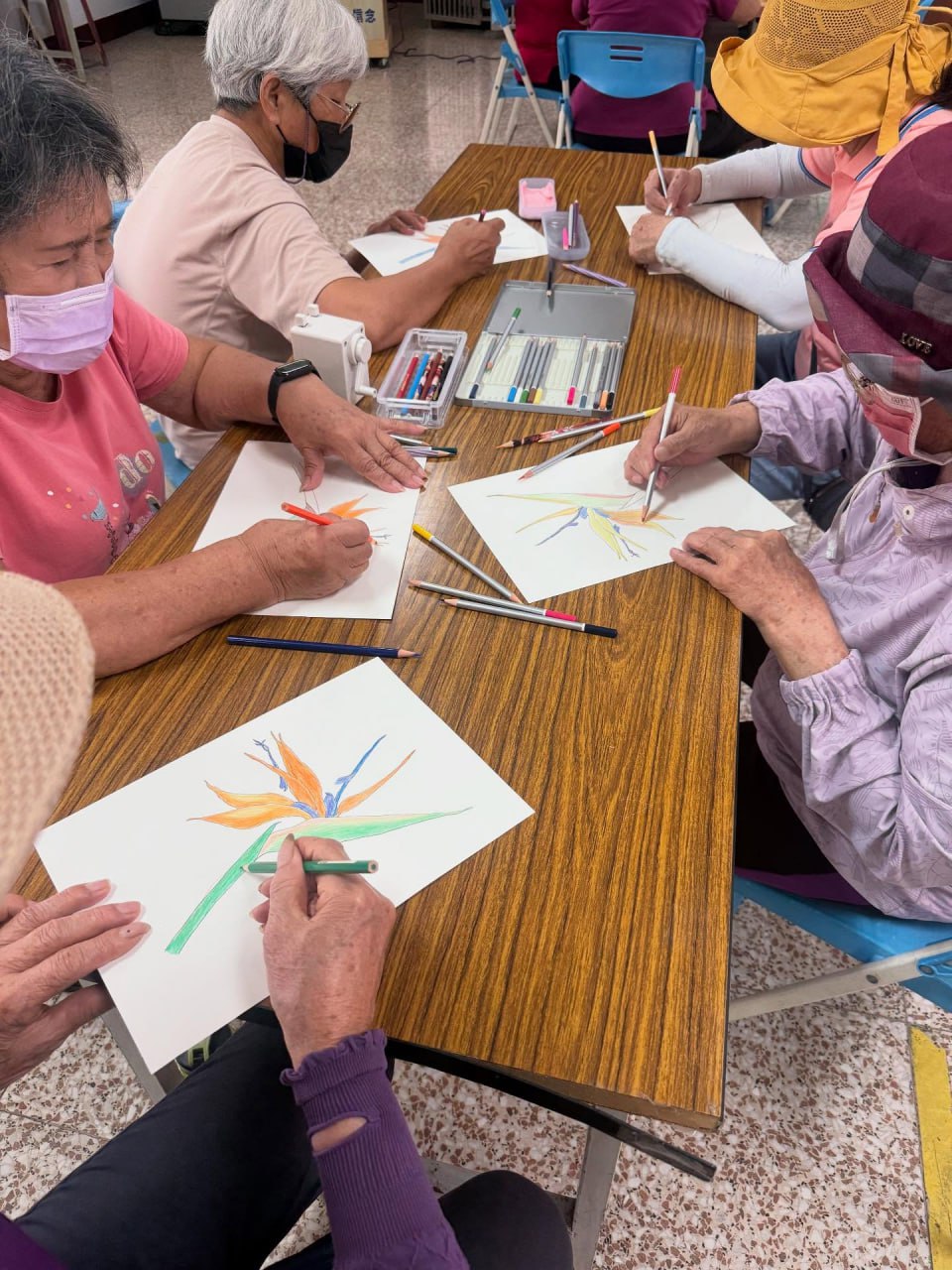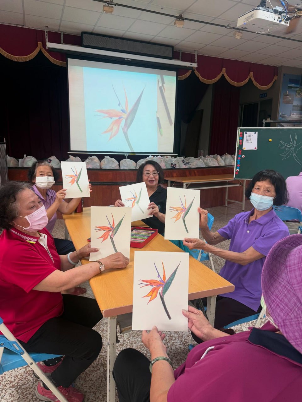其中一位長輩笑著說「我以前沒上過學,這張作品就是我的畢業證書!」這句話讓在場所有人都深受感動,對許多長輩來說,學習不只是課程,而是一場圓夢的旅程,他們小時候沒有機會接受教育,如今願意重新拾起畫筆,證明自己依然可以學習、可以創造