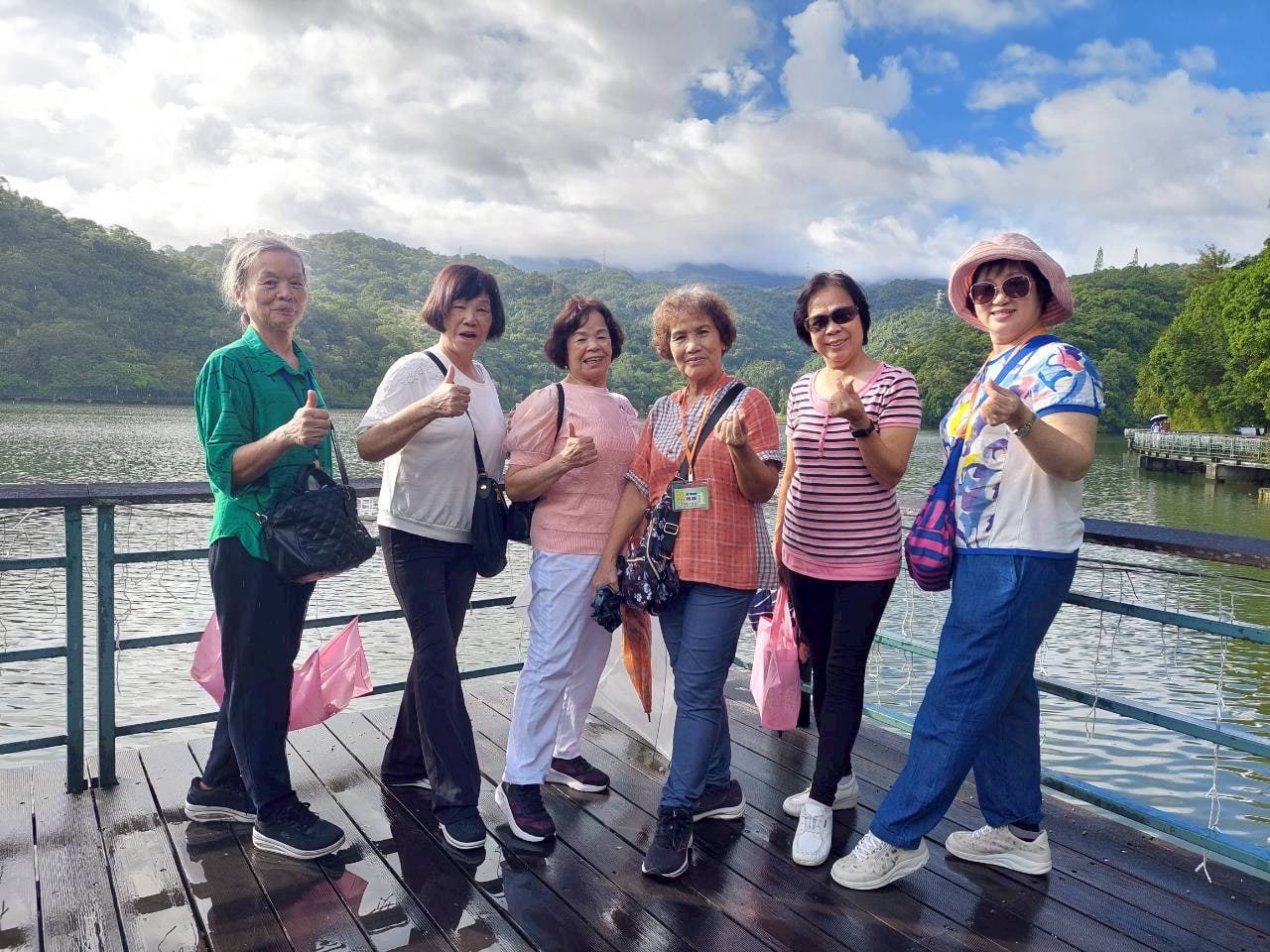 最後來到龍潭湖畔悠活園區,湖光山色倒映在眼前,微風輕拂,大家散步、拍照、談笑,享受最放鬆的午後時光