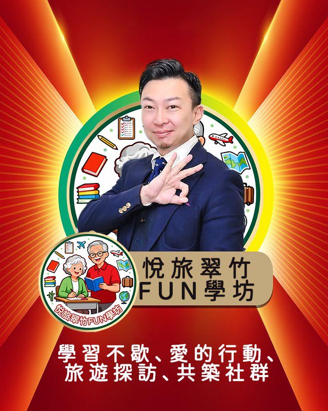 帶著這份信念,他創辦了「悅旅翠竹 FUN 學坊」悅旅象徵以喜悅面對生活,翠竹代表堅韌與成長,FUN 詮釋學習應該快樂且有啟發,而非沉重的負擔,學坊不只是課程中心,而是一個結合學習、共融與公益的社群,課程涵蓋退休理財、健康養生、生活美學與世代交流,並特別推動樂齡教育,鼓勵中高齡族群走出家門,拓展人際,重新找到自信與熱情
